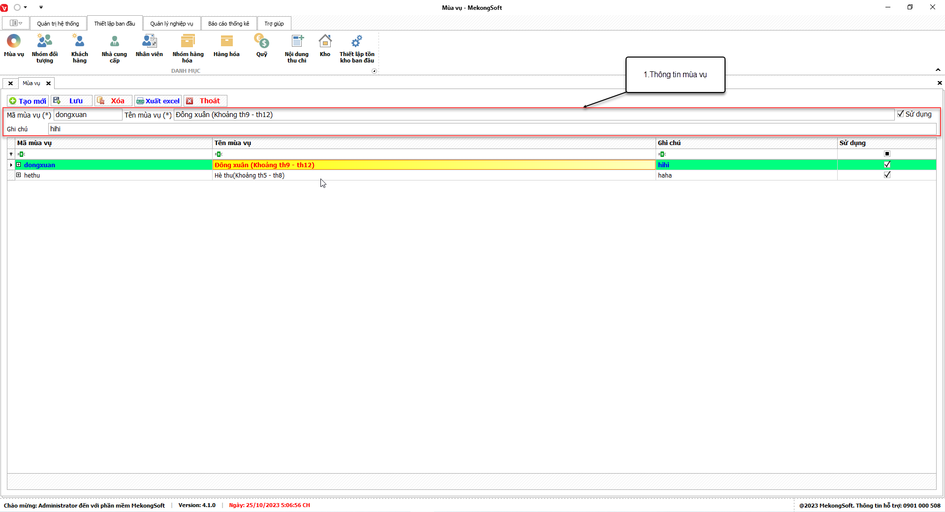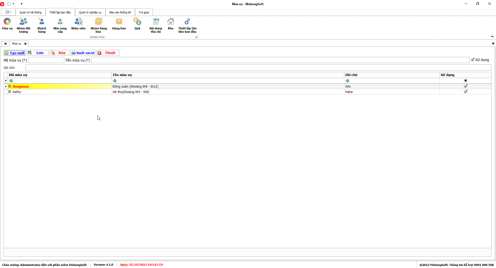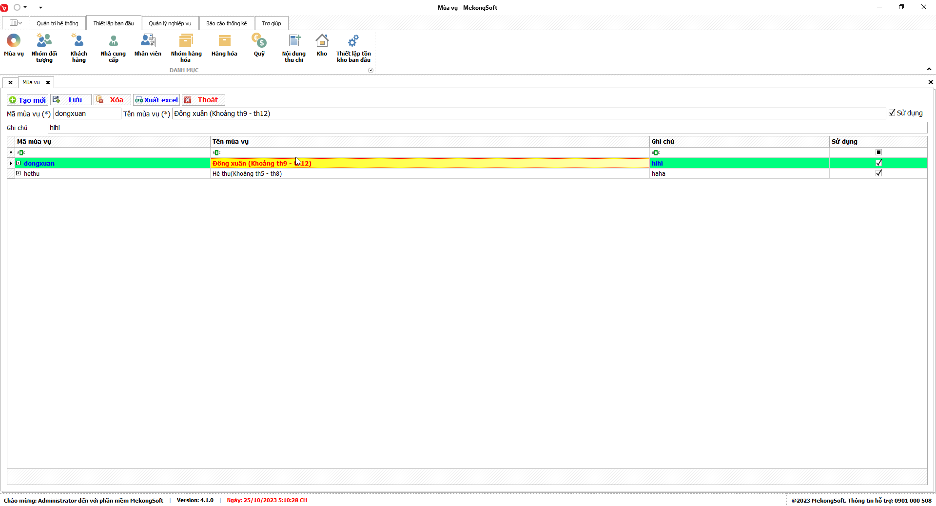 Xuất excel doanh thu theo mùa vụ