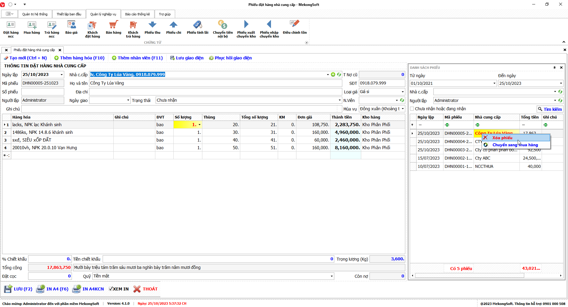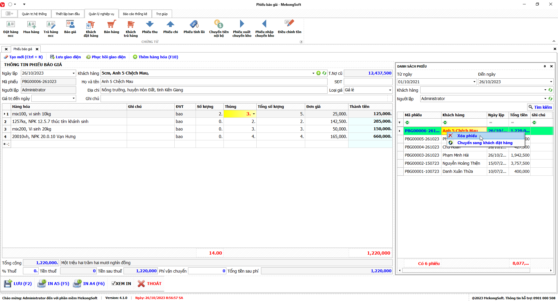 Để xóa nhóm quyền trên phần mềm quản lý bán hàng vật tư nông nghiệp, bạn có thể thực hiện theo các bước sau: